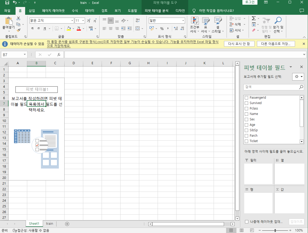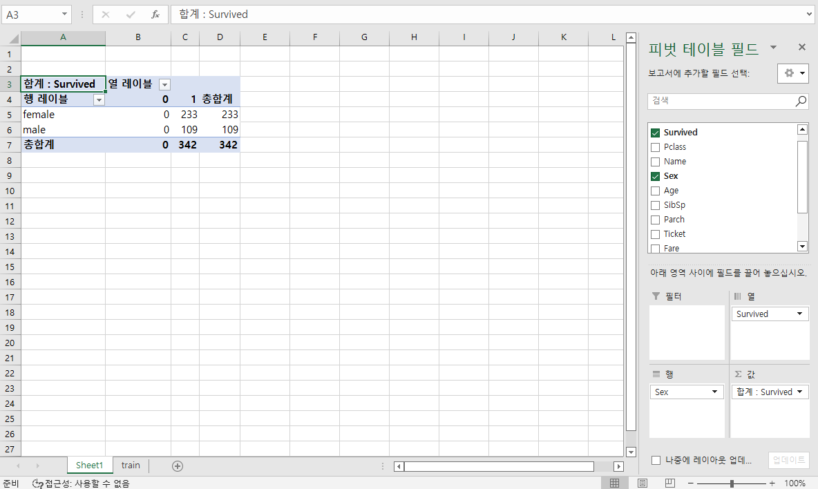 - 액셀을 사용하여 데이터 분석 - 캐글경진대회