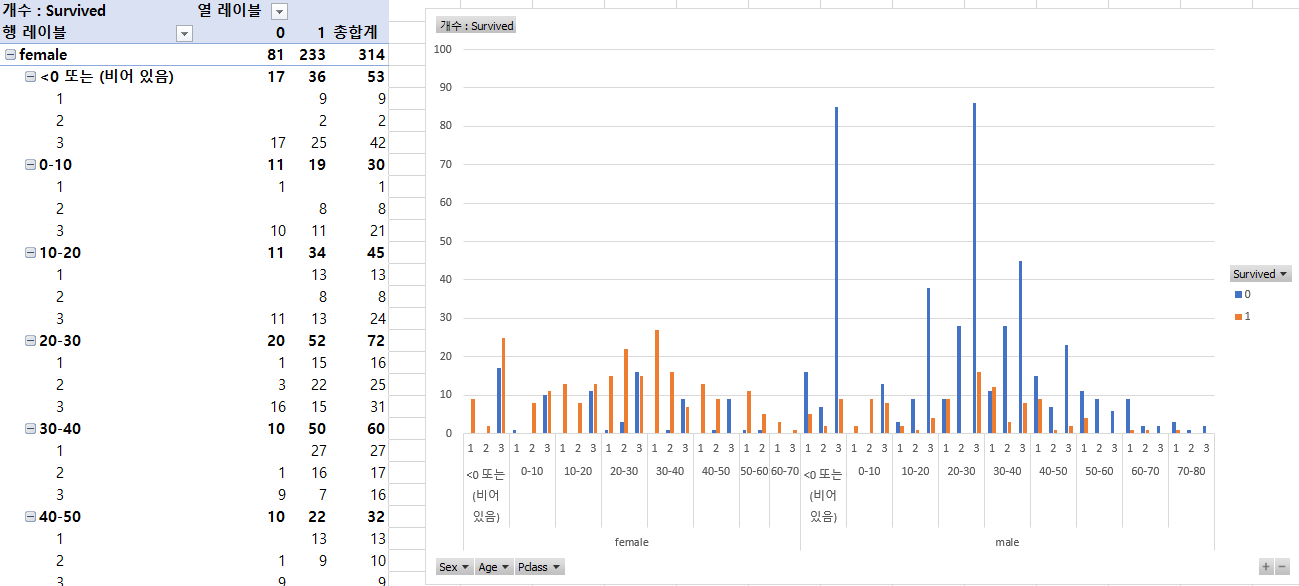- 피벗테이블 클릭 >> 피벗 테이블 분석 - 피벗 차트