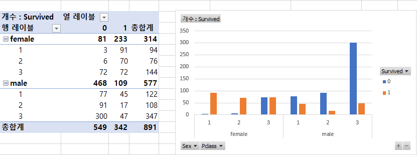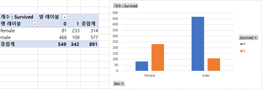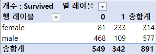 - 성별 생존여부