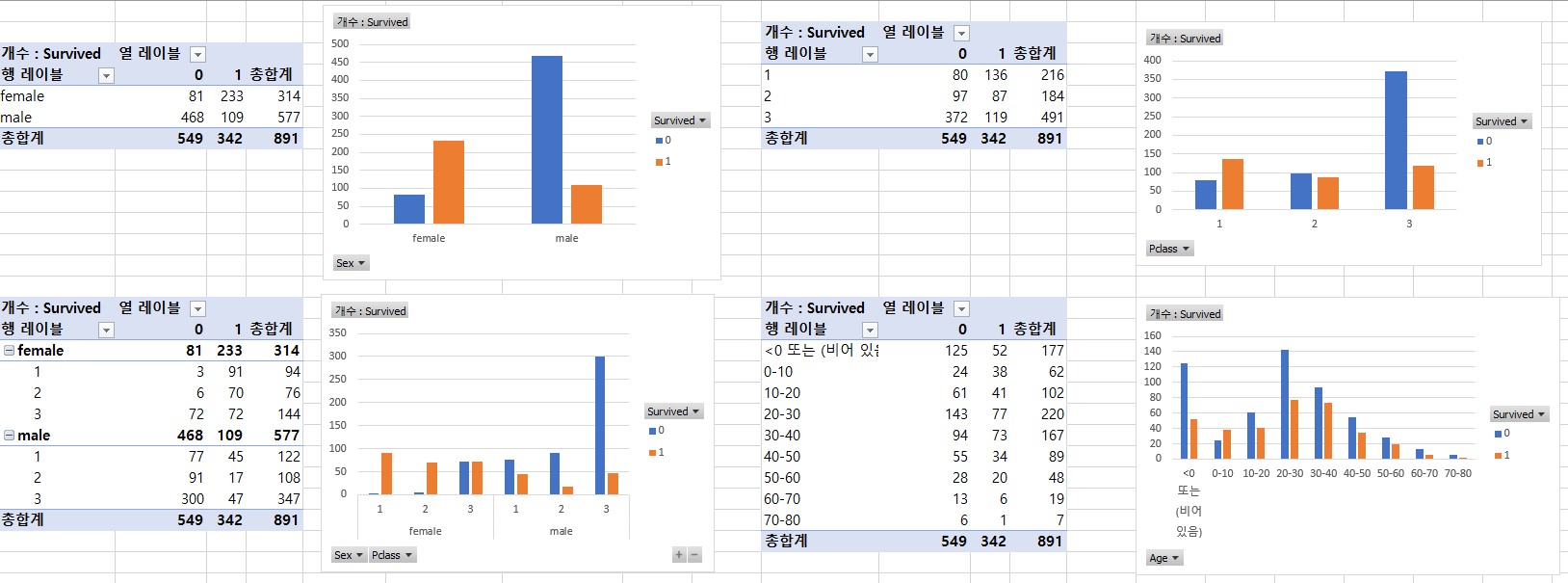 - 성별/티켓/Sibsp/나이