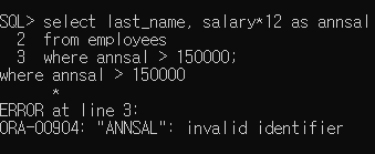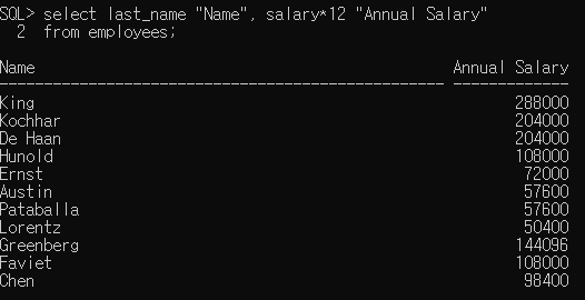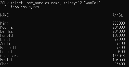- 1개의 column당 1개의 alias 명만 지정 가능
