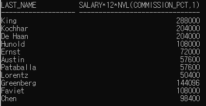 - commission_pct,1 : commission_pct가 null이 있으면 1로 대체