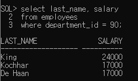 - 날짜와 문자는 왼쪽 정렬 (last_name, hire_date)