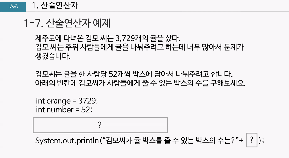System.out.println("김모씨가 귤 박스를 줄 수 있는 박스의 수는? " + sum + "박스");