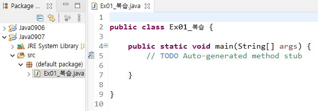 // 단축키 : ctrl + shift + 'o'