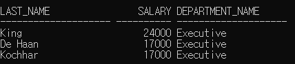 문제 : 연봉이 100000이상인 사원의 이름과 부서이름을 출력하시오.