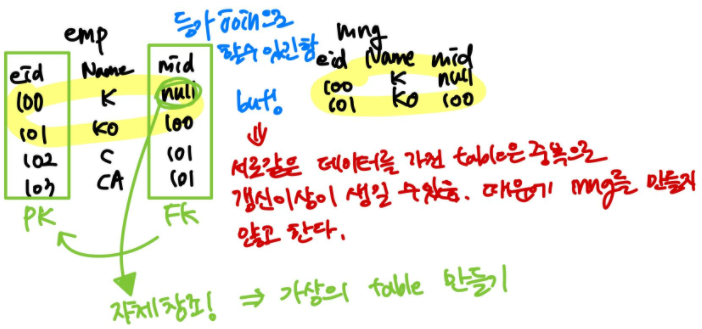 self join (가상의 테이블처럼 사용가능)