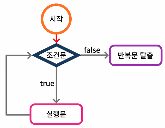 - 같은 내용이나 동작을 반복하여 출력, 실행하는 구조