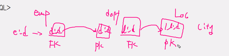 join table = emp, dept