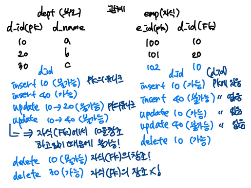 - 데이터베이스에 무결성을 보장하기 위해 DB 운영
