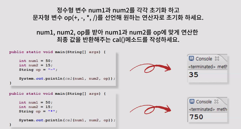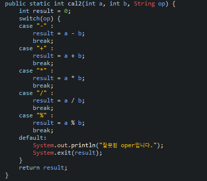 System.out.println(cal(num1, num2, op));