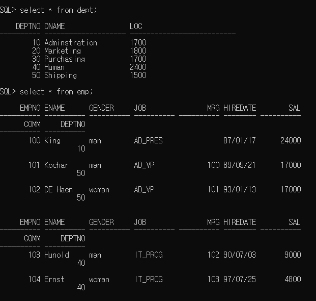문제 : 90번 부서에 근무하는 사원의 이름과 급여를 저장하는 dept90 테이블을 생성하시오.