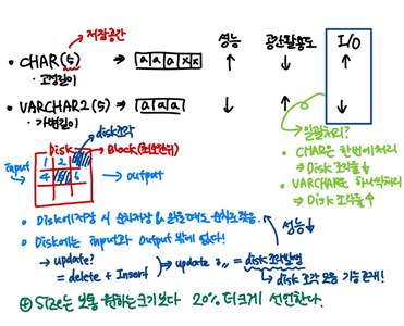 | 데이터 유형 | 길이 | IF) aaa 데이터 | 성능 | 공간활용도 |
