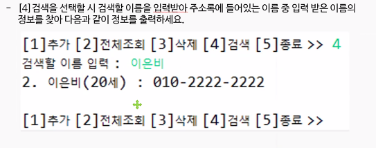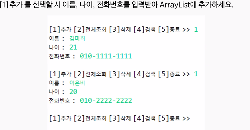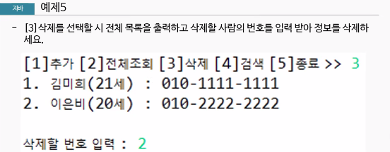 System.out.print("[1]추가 [2]전체조회 [3]삭제 [4]검색 [5]종료 >> ");