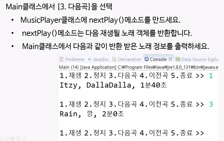 System.out.print("1.재생 2.정지 3.다음곡 4.이전곡 5.종료 >> ");
