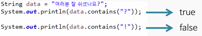 - 매개변수로 넣은 문자열이 포함되어 있는지 검사