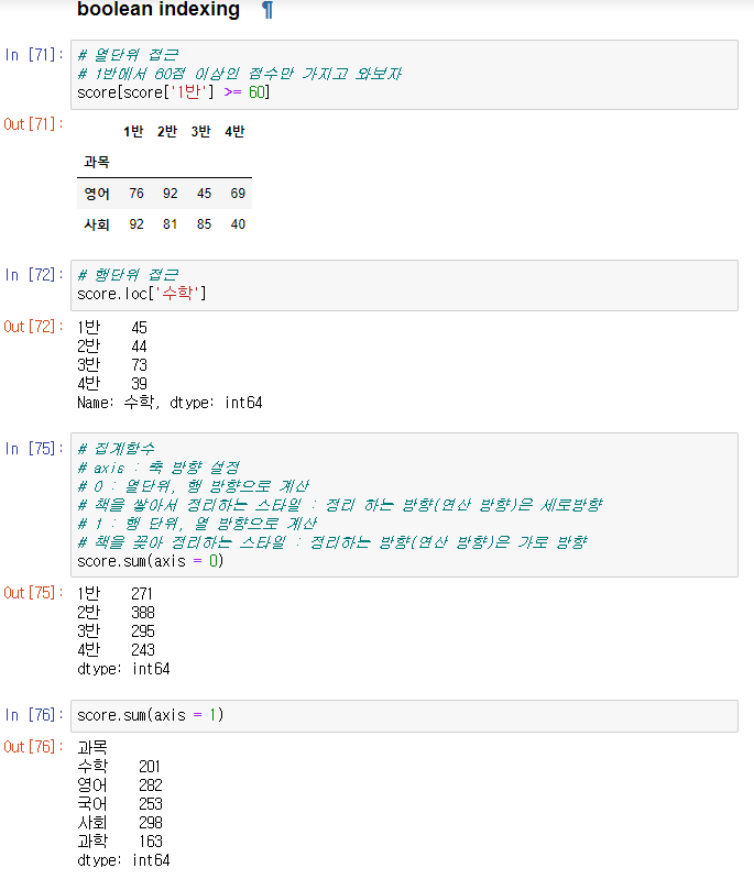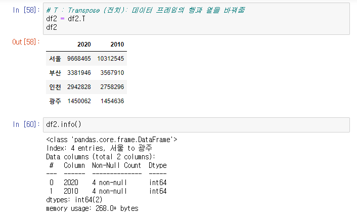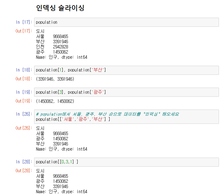 out : Index(['서울', '부산', '인천', '광주'], dtype='object')