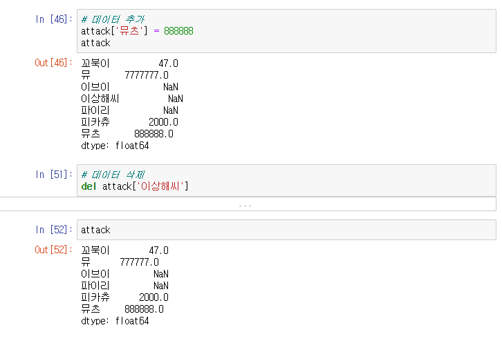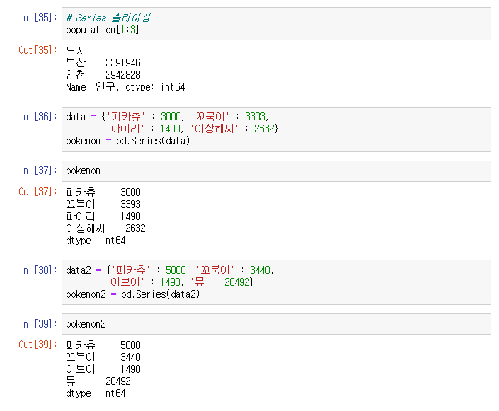 # Series() : 1차원의 시리즈 데이터 생성, 대소문자 구분 주의! 앞은 대문자 S